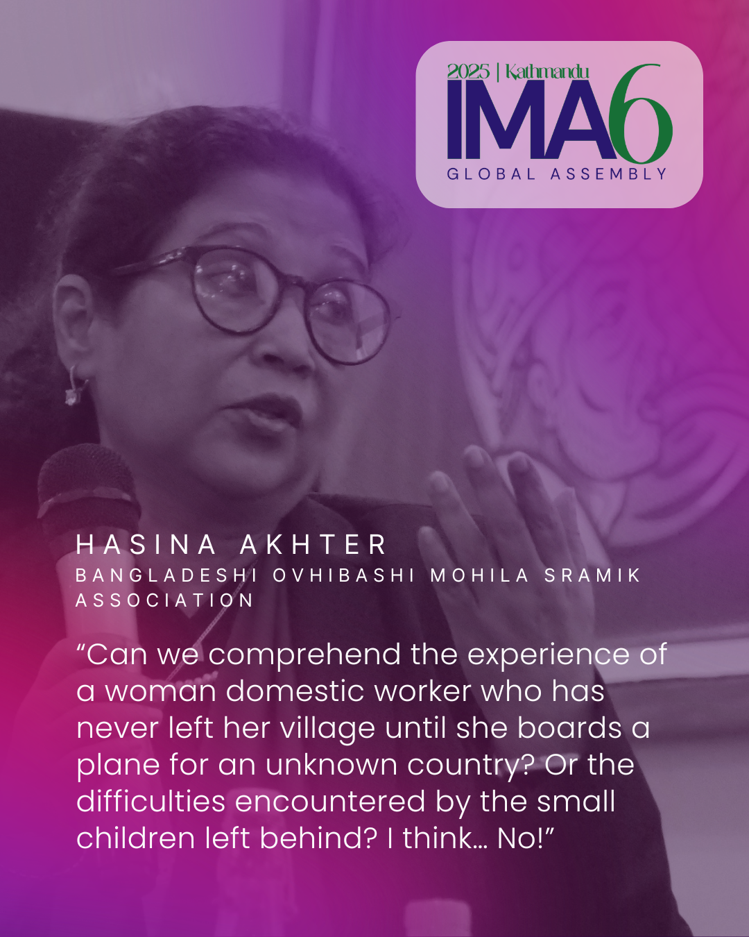 Can we comprehend the experience of a woman domestic worker who has never left her village until she boards a plane for an unknown country? Or the difficulties encountered by the small children left behind? I think… No!